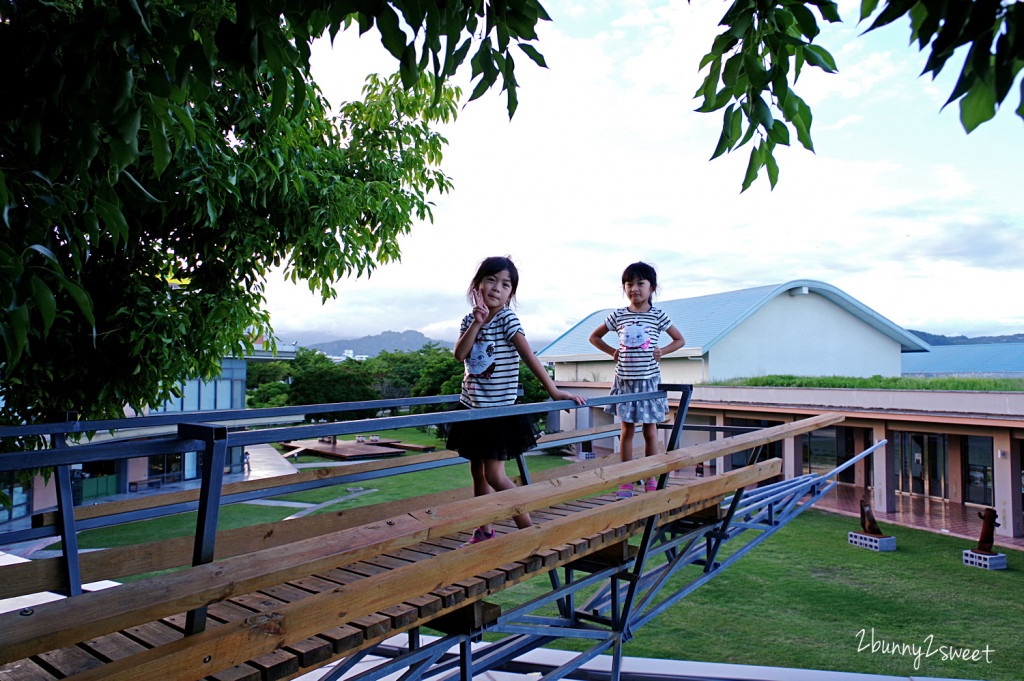 館內不定期推出特展或是親子藝術活動,戶外也有大片草皮與木棧道空間讓小朋友跑跳。美術館將木棧道與樹屋結合,像波浪似的木棧道形成特別的景觀,小朋友沿著木棧斜坡走到樹的旁邊、走到觀景台上,上上下下不亦樂乎。