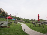 這裡的建物是以藍白色交錯的地中海風格為主,來這裡除了用餐外,天空上不時地有飛機從眼前飛過,讓小朋友看的也很開心,再配合上外面大片的草皮,可以讓人心情放鬆不少。