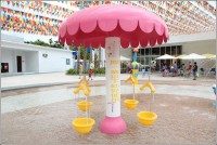 其他還有各式花灑設施,像是黃色太陽花、彎曲噴水柱...等,豐富的戲水設施,讓大家清涼一夏!