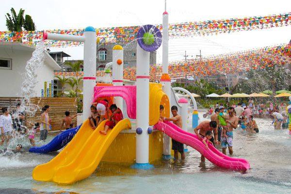 夏天來玩水的話,這裡的水大概都30-40公分,且有各種兒童用的水上設施,像是水槍、水上溜滑梯、水中蹺蹺板等,且好多設施都會噴水,很吸引小朋友。