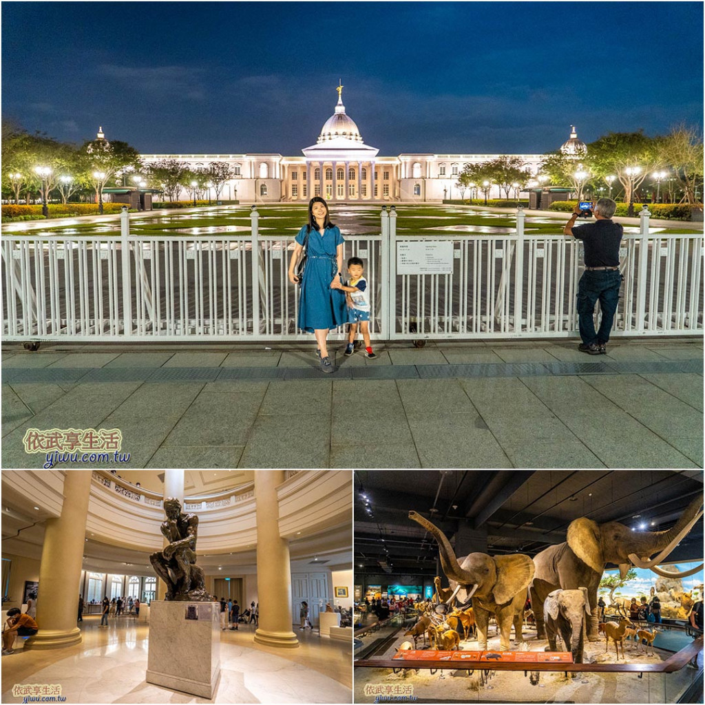 奇美博物館從白天到晚上,呈現出不同風貌的美景。