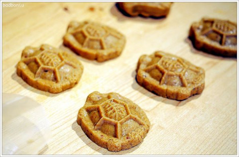 DIY的場所在李亭香的餅藝學苑裡,專門的教室給大家一個舒適的DIY空間,上課前會先進行影片導覽,讓大家認識李亭香的歷史與平安龜,接著老師先將花生粉與麥芽糖攪拌成團,再將花生糖交給小朋友整形入餡,最後將花生糖置入模型裡再敲打出來就完成嘍。口感香濃而不黏牙的平安龜,適合小朋友吃,