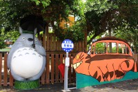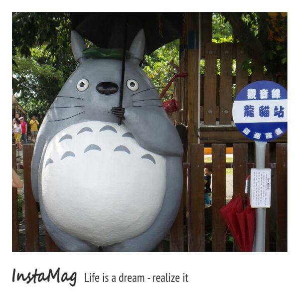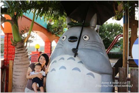 公車站牌旁,和美幼兒園還很貼心的放置了一把道具紅傘,遊客可以跟龍貓互動式的拍照,拍完記得將傘放回原處。大小朋友也可在龍貓公車背板後面搭車,透過窗戶看過去,宛如真的坐在公車上,讓人和梅姐妹兩一樣興奮不已。