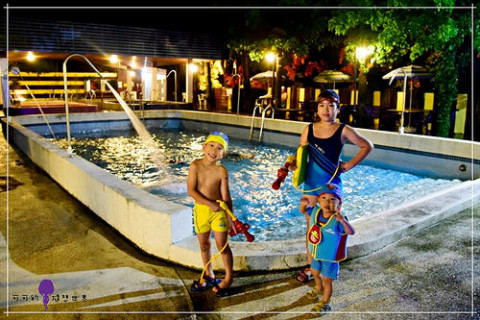 渡假村也有提供住宿,客房位於一棟二層樓的小木屋裡,1樓為湯屋客房,有2池泡湯浴池。2樓則為一般客房,泡湯需至大眾池。露營皆為草地營位,分為3區,可收約27帳,營區內有金字塔與3D動物彩繪牆,很受小朋友喜愛。