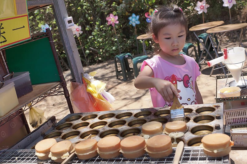 唐牛紅豆餅是一個露天式的行動攤車,開放給遊客DIY體驗的時間為每週六日及國定假日的10:00-14:30,從清潔爐台、抹油、倒麵糊到放餡料都可以讓小朋友自行製作,老闆都會協助指導。因為是賣場實際操作會常常有遊客踩腳踏車經過,當有客人來消費時還可自己賣賣看,真實體驗自己當老闆辛苦與樂趣。