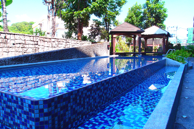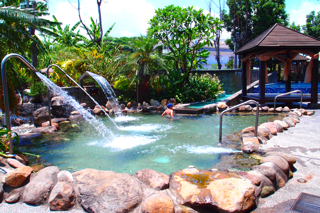 在旁邊還有4池各有不同效果的泡湯池,冷的溫的都有,游泳累了也可以來這裡泡湯享受片刻的安靜。