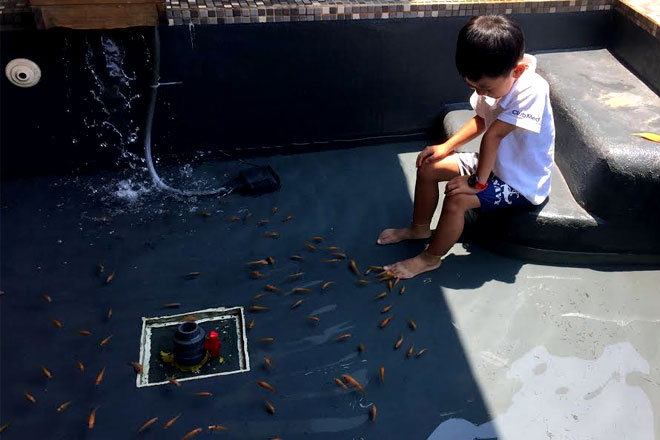 最後面還有一個小型的親親小腳池,大人跟小朋友可以把腳放進去享受一下魚兒幫忙按摩腳步的酥麻感。