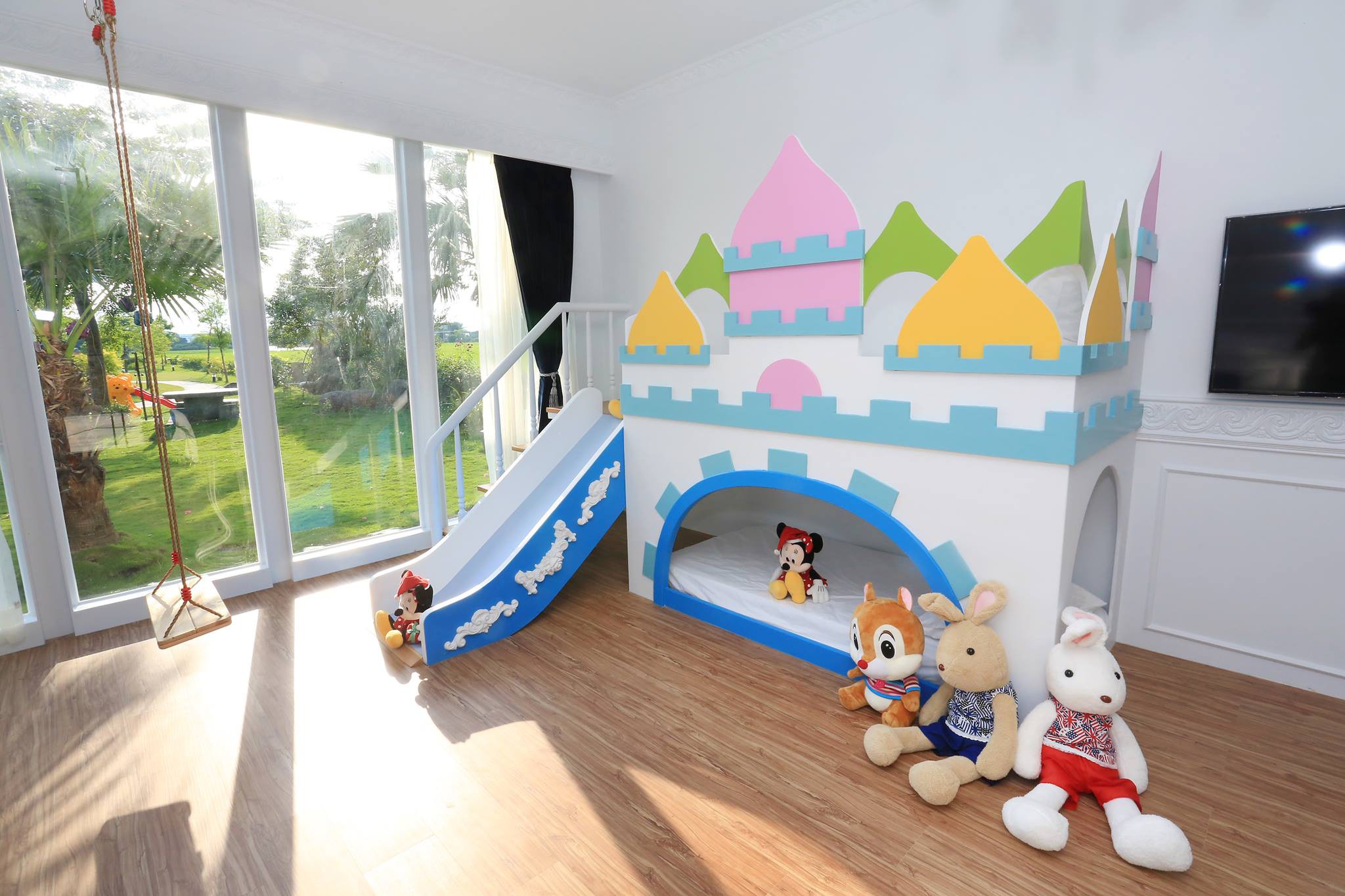 田庄園的房間以童話故事為主軸,有三間4人房及一間6人房,分別是兔子迷宮四人城堡、仙杜瑞拉四人城堡、奇幻世界四人城堡及熊熊森林六人城堡。且每間都有小朋友最愛的溜滑梯、各式玩偶及玩具,有的房間還有盪鞦千。
