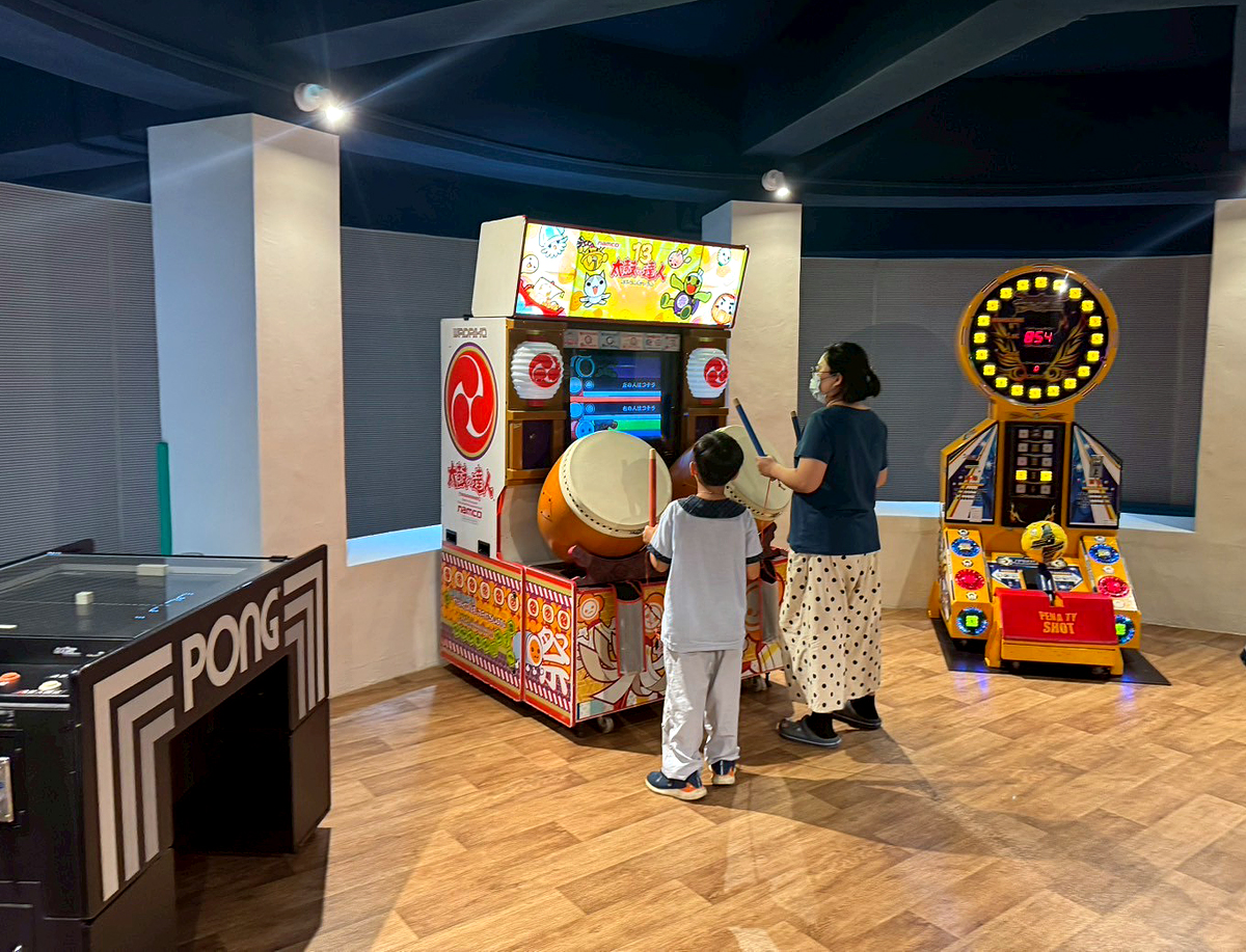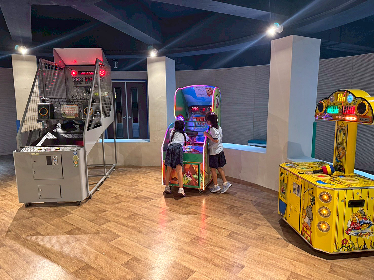 想不到兒童館還有電動遊戲!聲光放電裡提供籃球機、太鼓達人、打地鼠等電動遊戲。