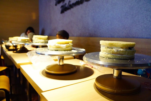 這裡的DIY不只單純彩繪蛋糕而已,由基礎的海綿蛋糕體開始組合,帶著小朋友塗上內餡再一片一片的將蛋糕放上去,共三片海綿蛋糕,製作過程中也可以訓練小朋友的操作力道呢。