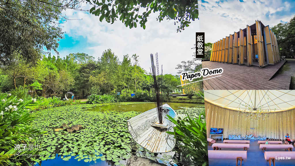南投有一間紙教堂,是當初因為撫慰921災民而建的,柱子、椅子都用紙做成的,戶外有很大片的草皮,也有池塘,還有一個輕食區。