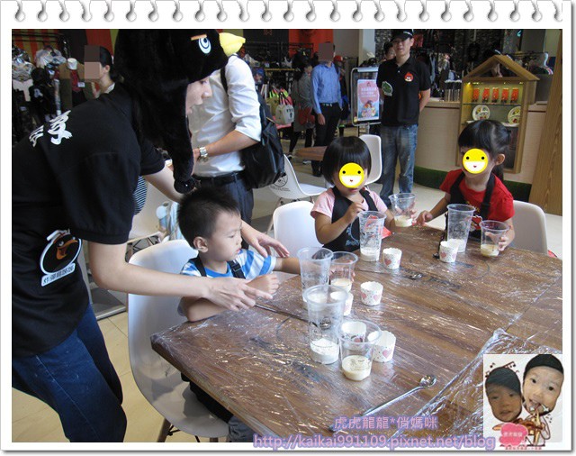 於今年新開幕的Angry Birds果汁&茶主題餐飲,也舉辦小小店長體驗營。體驗內容有小蛋糕、餅乾、製作新鮮果汁、櫃台點餐...等,小朋友到現場,先換上小店長制服,接著Angry Birds的哥哥姊姊們會帶領小朋友開始體驗活動。