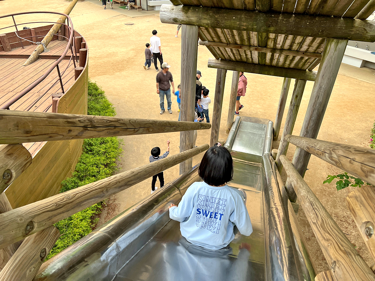 入場後首先看到帥氣的大船,先爬上大船再溜滑梯下去,開啟遊樂首發。