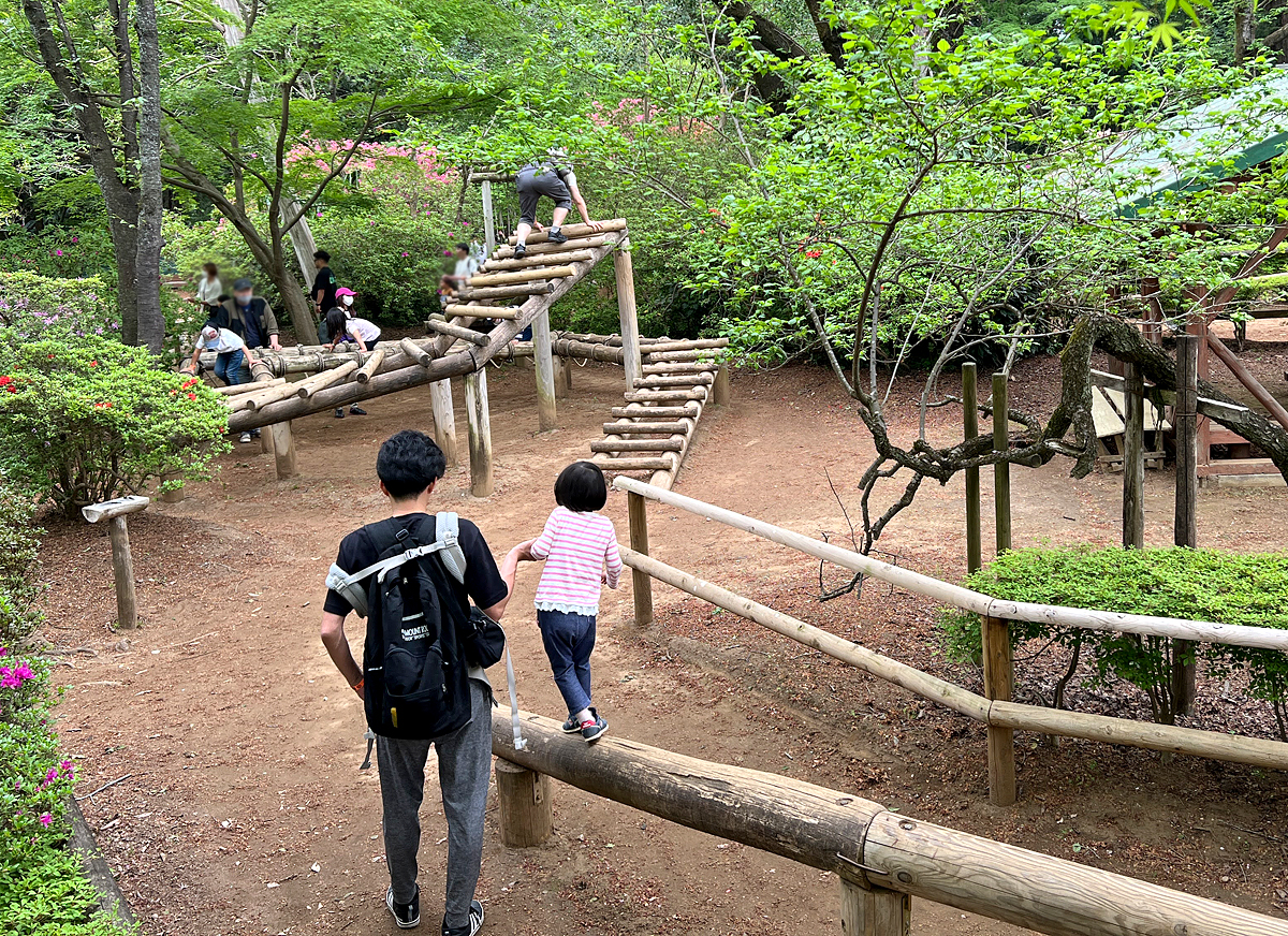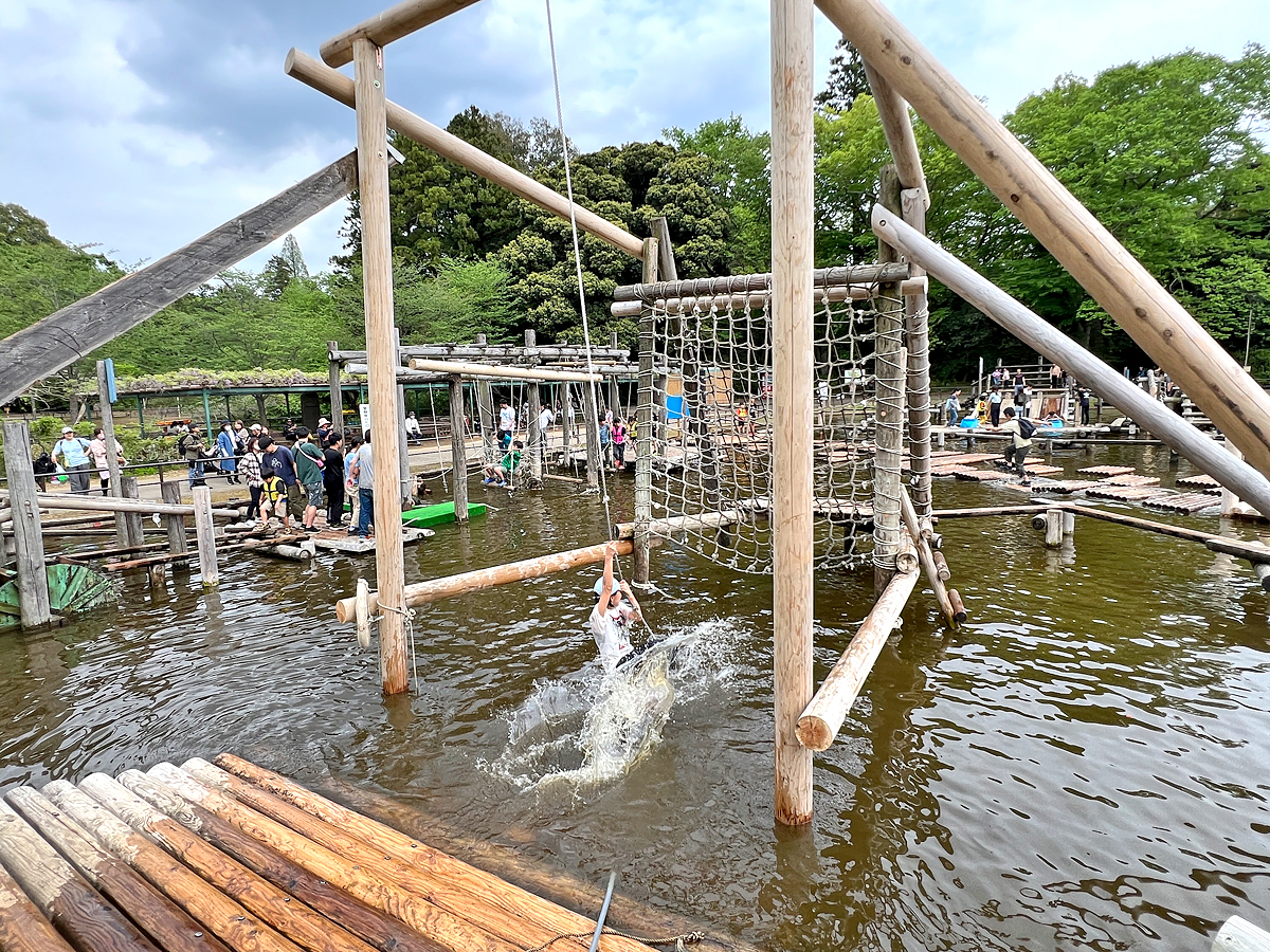 清水公園位於日本千葉縣野田市,佔地約28公頃,除了很適合賞櫻花外,裡面有一個適合全家共玩的陸上水上野外競技場(Field Athletics),設計100項原木挑戰設施,可以玩很久,且這些設施在台灣很少見,非常值得一玩。