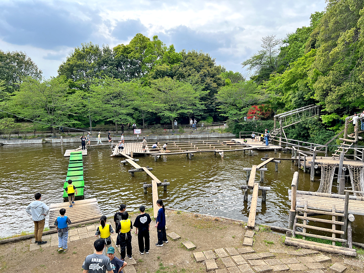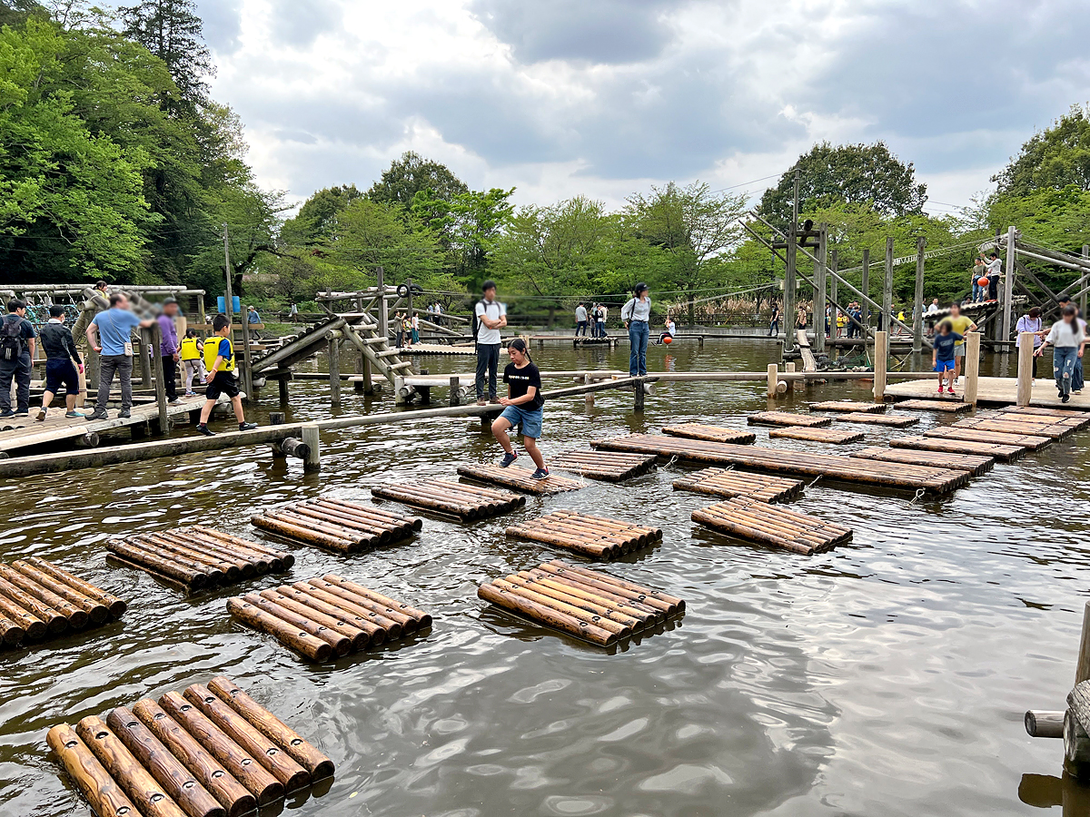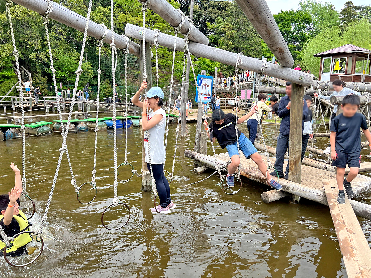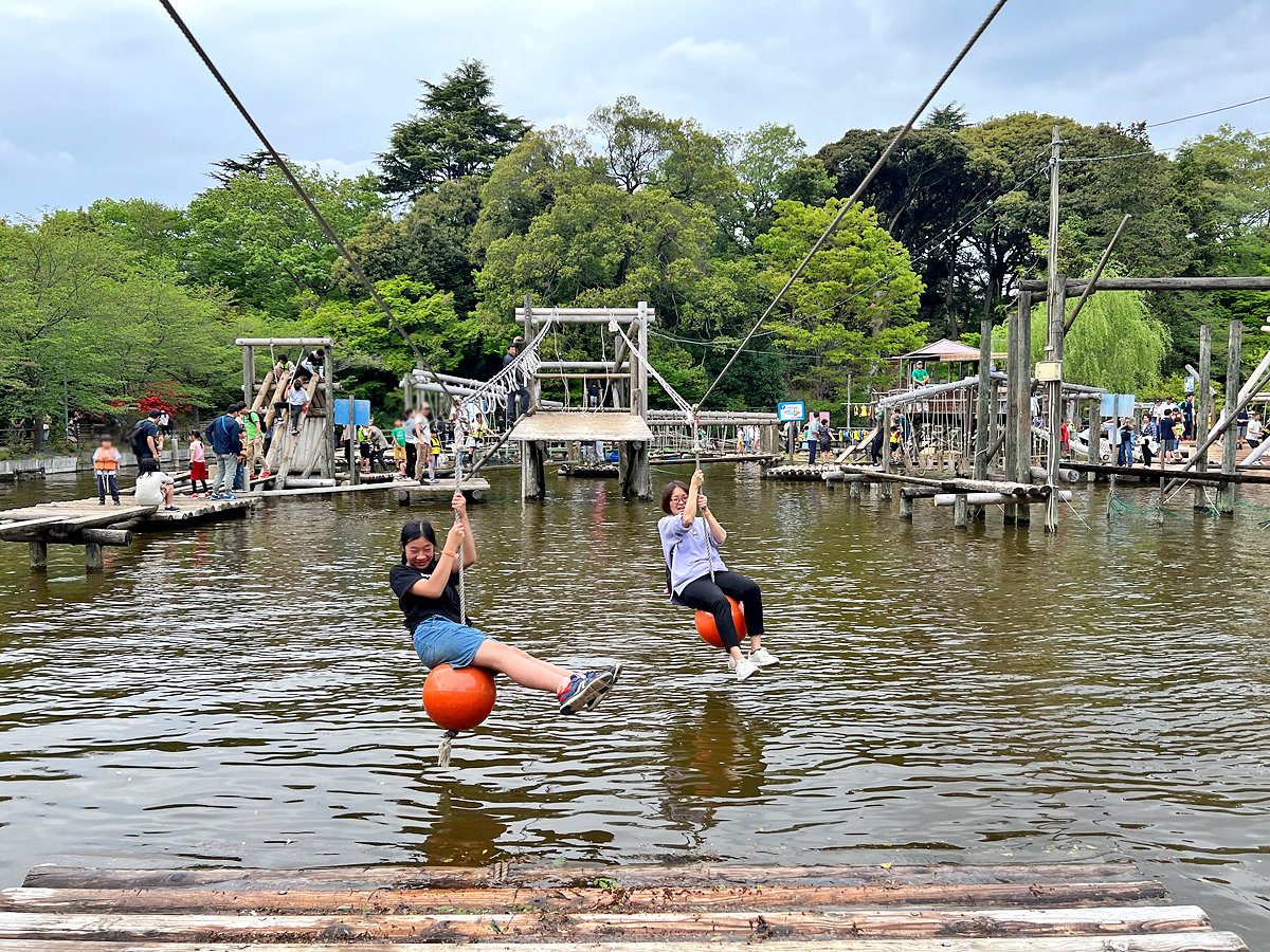 清水公園位於日本千葉縣野田市,佔地約28公頃,除了很適合賞櫻花外,裡面有一個適合全家共玩的陸上水上野外競技場(Field Athletics),設計100項原木挑戰設施,可以玩很久,且這些設施在台灣很少見,非常值得一玩!