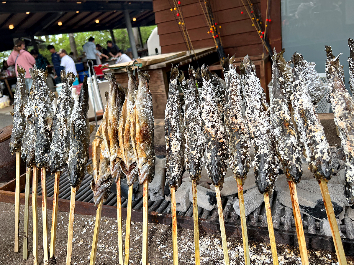 現釣現烤的虹鱒肉質細緻,又鮮又甜,非常美味。