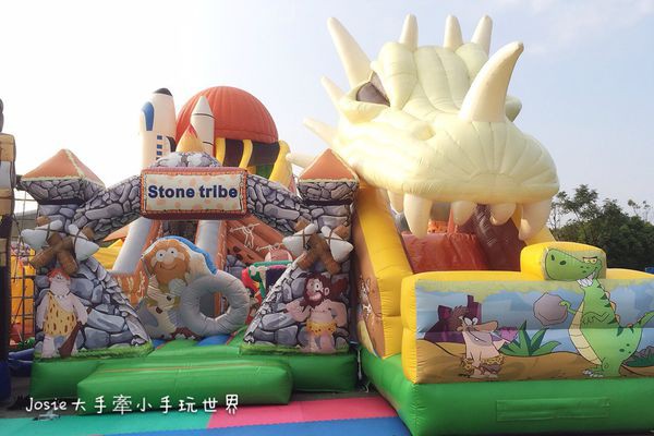 每一區的氣墊樂園都有各自的主題,像這一區是侏儸紀公園,每一區都會有自己的氣墊溜滑梯跟氣墊遊戲。