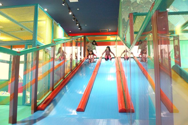 裡面樂園的設施總共包含7大區,其中一區是「すいすいスライダー」的溜滑梯區,滑梯全長有8公尺,是一個超刺激的巨大型溜滑梯。