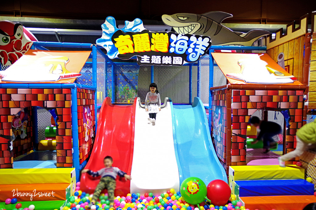 有溜滑梯球池、彈跳床、搖搖椅、旋轉方塊、與一些攀爬設施。