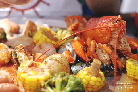 這裡的用餐特色是將海鮮、玉米、馬鈴薯...等食材水煮後用醬料拌勻,裝在「水桶」裡端上桌。店員還會放上一個大鐵盤,將水桶裡的食材倒上鐵盤即可享用,豪邁的擺盤很少見。除了水桶套餐,也可單點義大利麵、炒飯、燒烤...等。