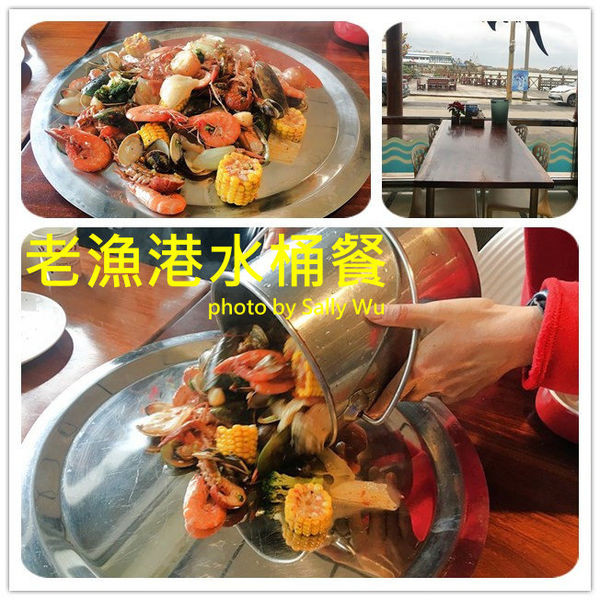老漁港新海鮮餐廳就在新竹南寮漁港裡,於2015/06/06開始營業,不同於傳統海鮮餐廳,老漁港走美式風格,這裡的用餐特色是將海鮮、玉米、馬鈴薯...等食材水煮後用醬料拌勻,裝在「水桶」裡端上桌。