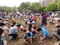 這座沙坑有提供濕式玩法,混著水的沙可以做出更多不同玩法。