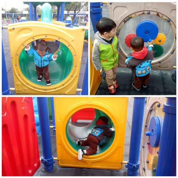 小朋友們認真的攀爬闖關,訓練手腳協調。