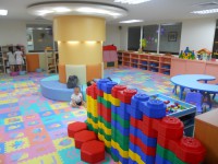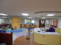 裡面除了有繪本、童書外,重點就是遊戲區囉,有分兩區,一區是0-2歲的,裡面有提供球池、教具及各種玩具、積木等。另一區是2-7歲的遊戲區,裡面除了有較大型的積木外,還有大型的麵包店、扮家家酒玩具等,小孩子最喜歡模仿大人煮菜、買賣東西了。