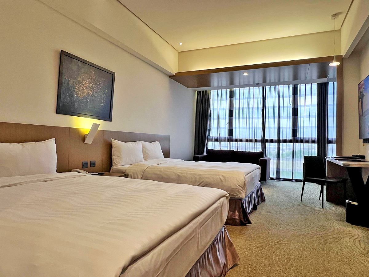 入住的房型有雙人及四人房,這間是天籟經典房,房內空間10坪,配置1大床,適合2大1幼家庭入住。