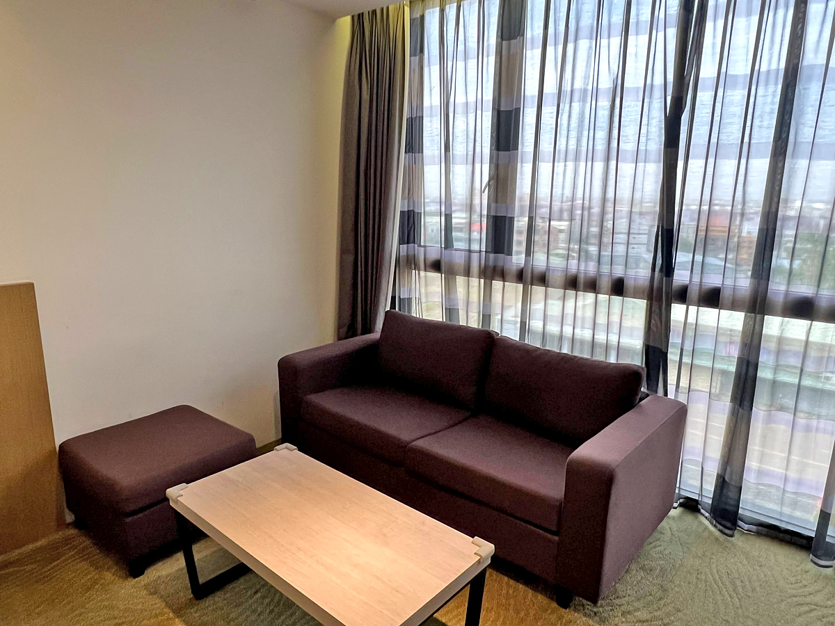 另一側設置舒適的沙發座椅,方便旅客等候或休憩使用。