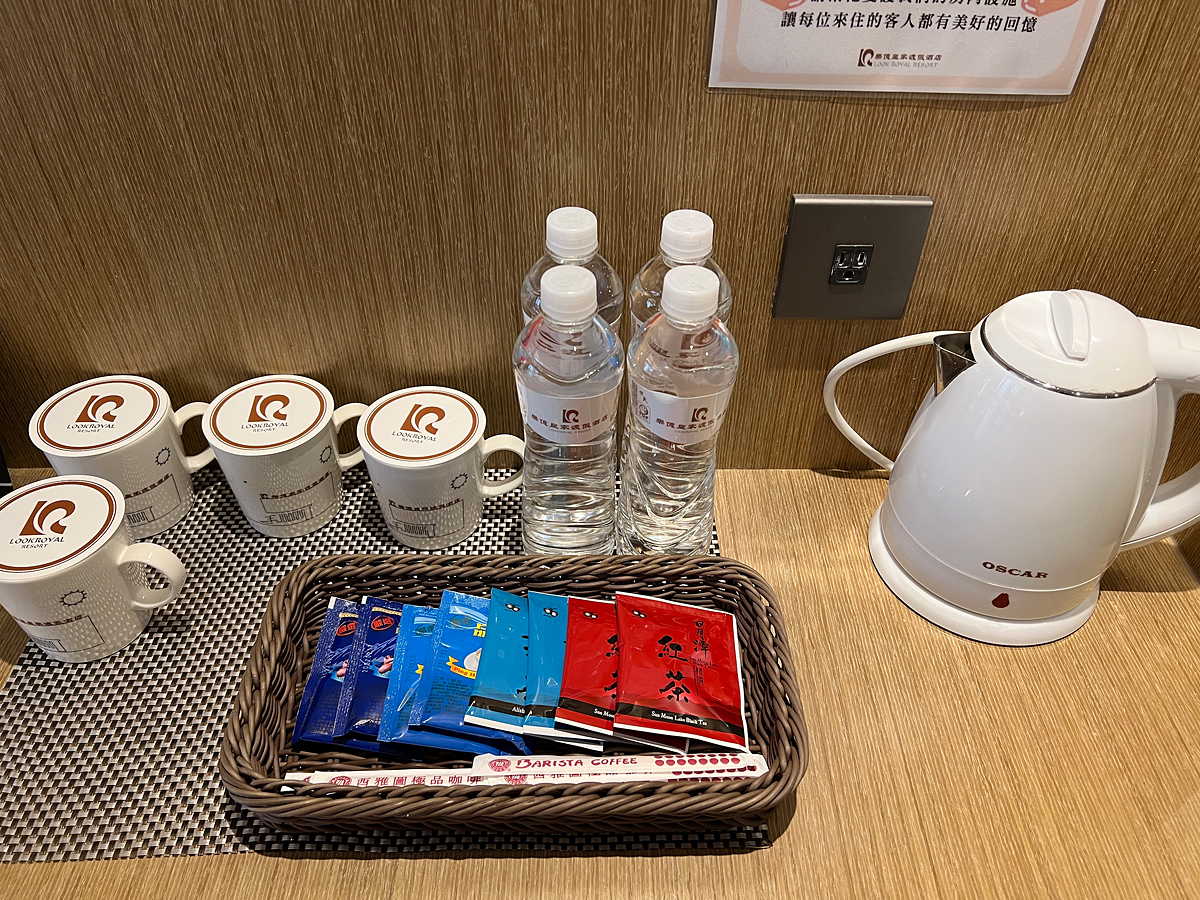 飯店客房內都有提供飲用水、茶包與熱水壺。