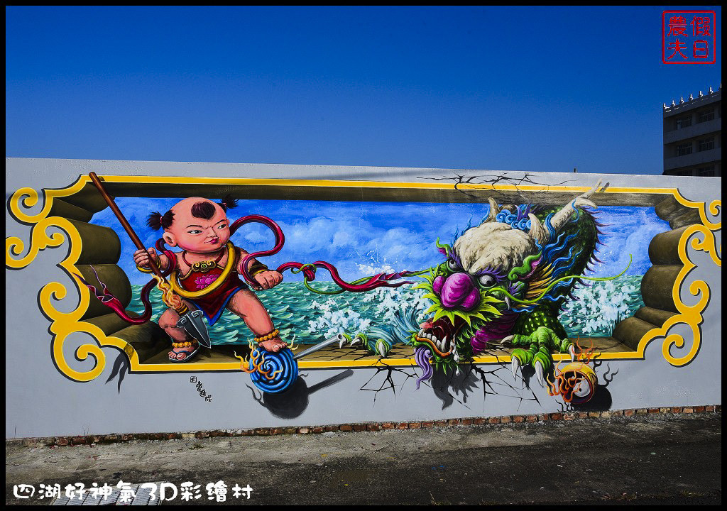 景點位在四湖鄉普天宮附近,由普天宮前方小路左轉會看到手繪指標告知前往方向。彩繪牆有嫦娥奔月、哪吒鬧海、烏魚子夾娃娃機、火炎山之鐵扇公主、凹雕轉頭佛祖等, 且每幅畫作皆有互動設計,讓大家輕鬆拍出逼真又有趣的照片。
