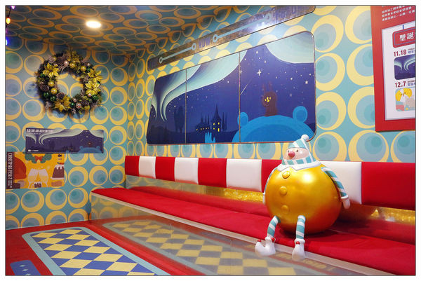 聖誕樹旁圍繞的是圓滾滾的聖誕老人,可愛的造型吸引小朋友的注意。今年勤美推出聖誕時光列車,鮮紅色大車,有著麋鹿的角,可以跟小朋友一起上車拍照。