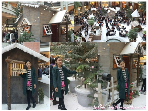 位在台北市信義區的寶麗廣場,將聖誕老公公的家-北歐小鎮搬到寶麗中庭了!歐式小木屋、雪白色的屋頂與仿雪地的白沙石,仿佛走入童話小鎮。