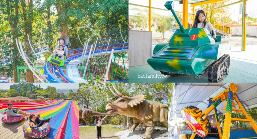 園區內每項設施採單獨計費遊玩,爸媽可選擇純入園參觀拍照,再選擇喜好的設施來玩,更有彈性。12項設施裡最超值的就屬彩虹滑道,一張票可無限暢玩,坐上橡皮艇俯衝而下,快又刺激;最特別的就屬叢林探險車與漂漂河,由高空順著軌道而下,非常有趣。