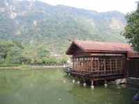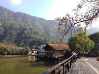 穿過林班道商圈,來到了景色絕佳的「貯木池」,早年木業興盛時,會將原木搬運至此浸泡貯存。
