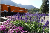 車站前面利用廢棄枕木進行裝飾,並擺放火車頭讓大小朋友拍照。