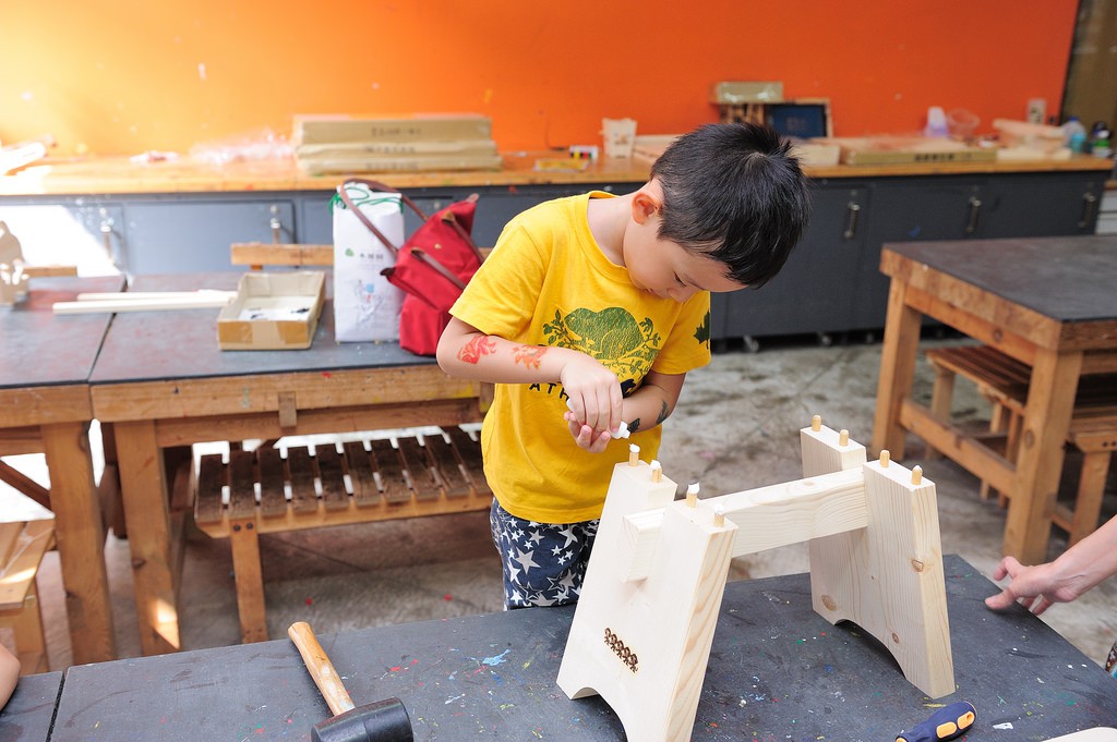 DIY內容有適合小小孩的彩繪、組裝等課程;也有適合大小孩的小板凳、彈珠台、書架等,可以選擇製作一個屬於自己的木工產品。