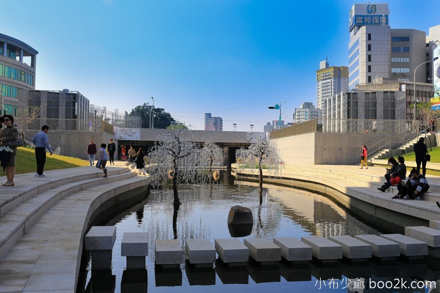 河道二旁舖上草皮,種植不少樹木與小花,未來樹木變的更壯大,厚實的樹蔭更容易讓人賴在下方捨不得離開。