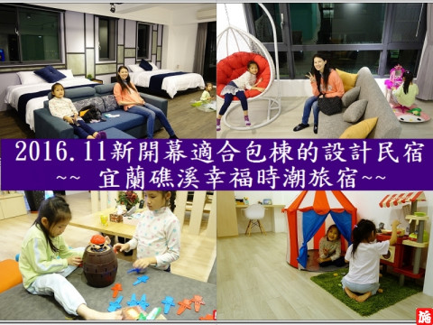 幸福時潮旅宿位在宜蘭礁溪,開幕於2016/11/05,民宿擁有4間雙人房、4間四人房、1間八人房,每間房型時尚簡約,空間寬廠,房內會提供給小朋友玩的玩具,讓小朋友不無聊。