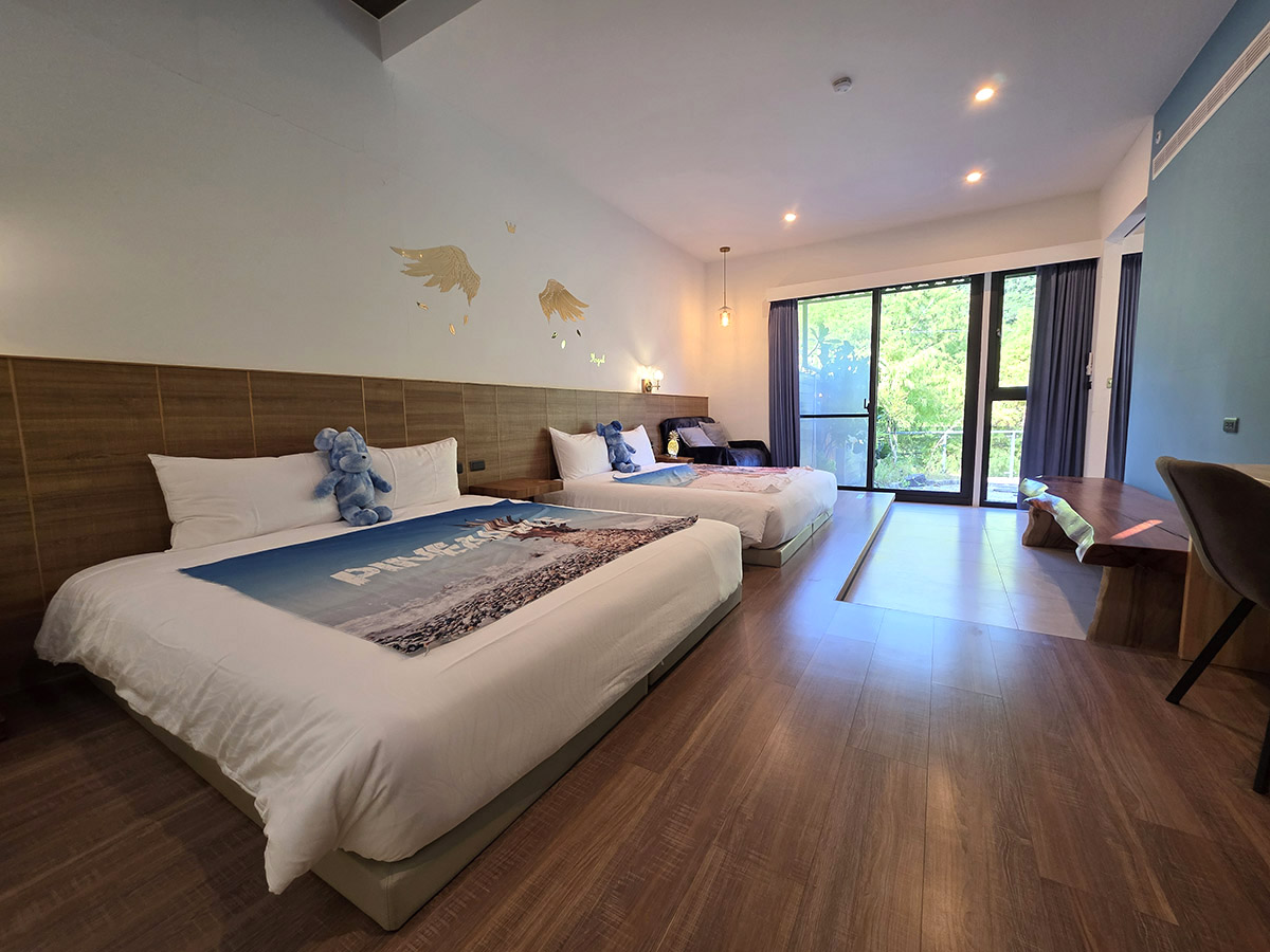 房內提供2張雙人床,並在房間內放上可愛熊布偶做為裝飾。