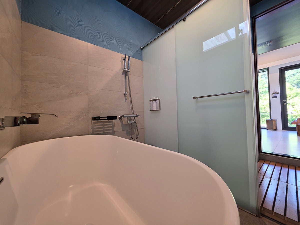 「盤石」房內提供2張雙人床,浴室一樣採乾濕分離並有專屬浴缸,此房型皆有自己獨立小花園。