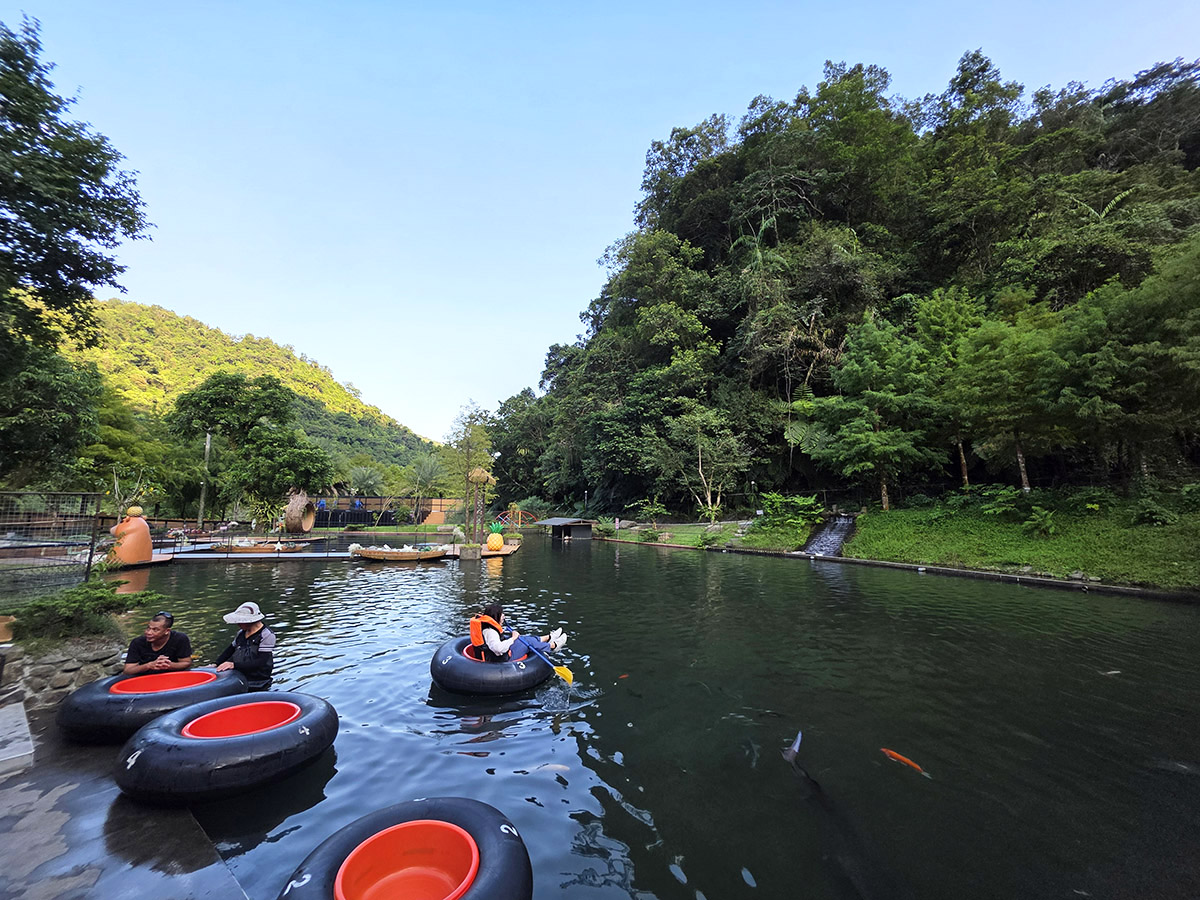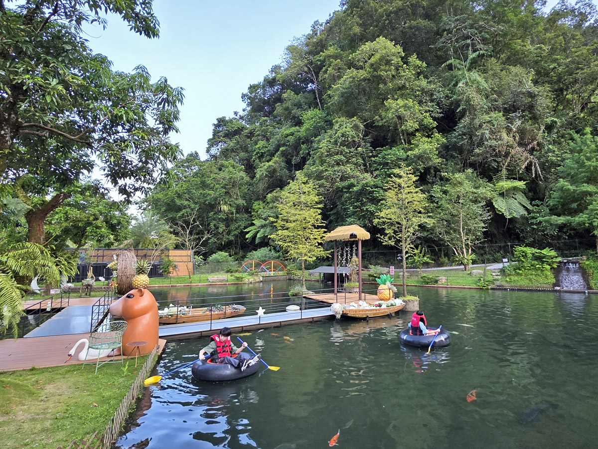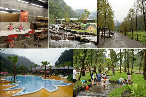 營地分為4大區,有草地、棧板、碎石營位,還有豪華帳、套房與雅房的住宿選擇。園區內大大小小的瀑布超過10座,清淺的河道穿梭在營區裡,小朋友在旁邊就能玩水很方便。想泡在水裡就去鳯梨大泳池戲水,還有小小孩愛的戲沙坑。另外園區內有鯉魚、鱒魚與鱘龍魚池,可以帶小朋友來看魚