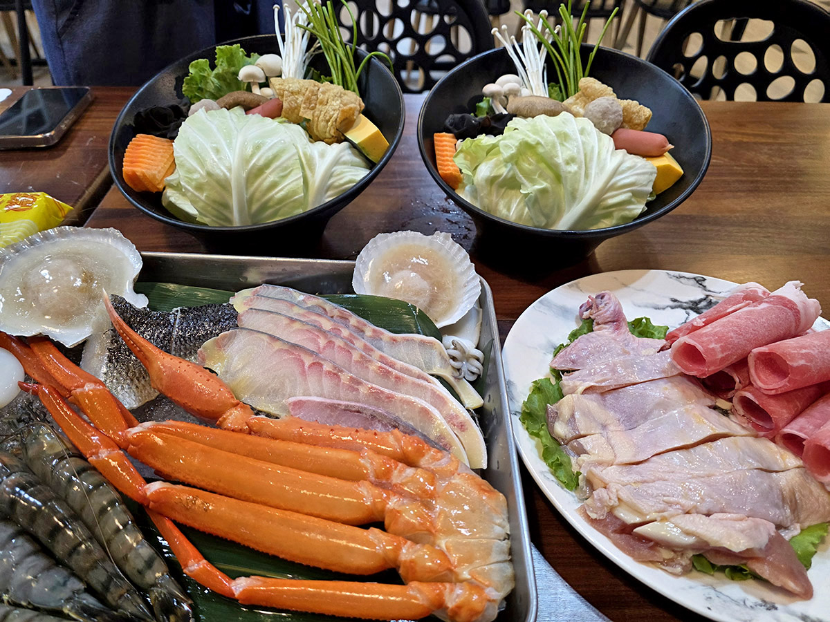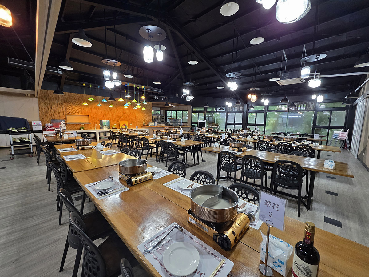 晚餐預設每房提供2份,提供的是火鍋,有菜盤、肉盤,飲料免費喝到飽、炊飯、王子麵與冬粉吃到飽。若超過人數要享用晚餐可自行加價(需預約),晚餐大人專案加購價為500元,火鍋有鱘龍魚、豬肉、素食三種可以選擇。