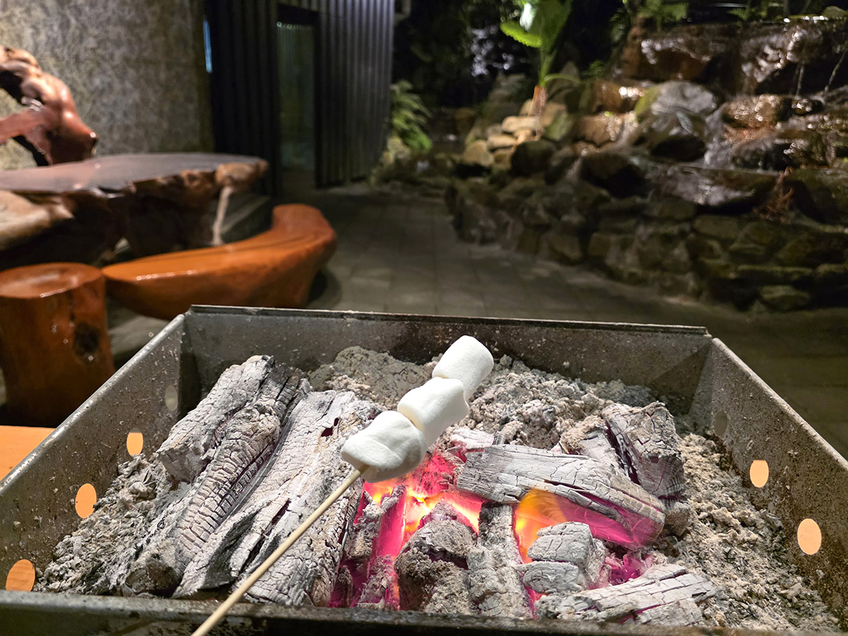 戶外還有免費烤棉花糖的活動,豪華房型的房客只要排隊通通免費哦!