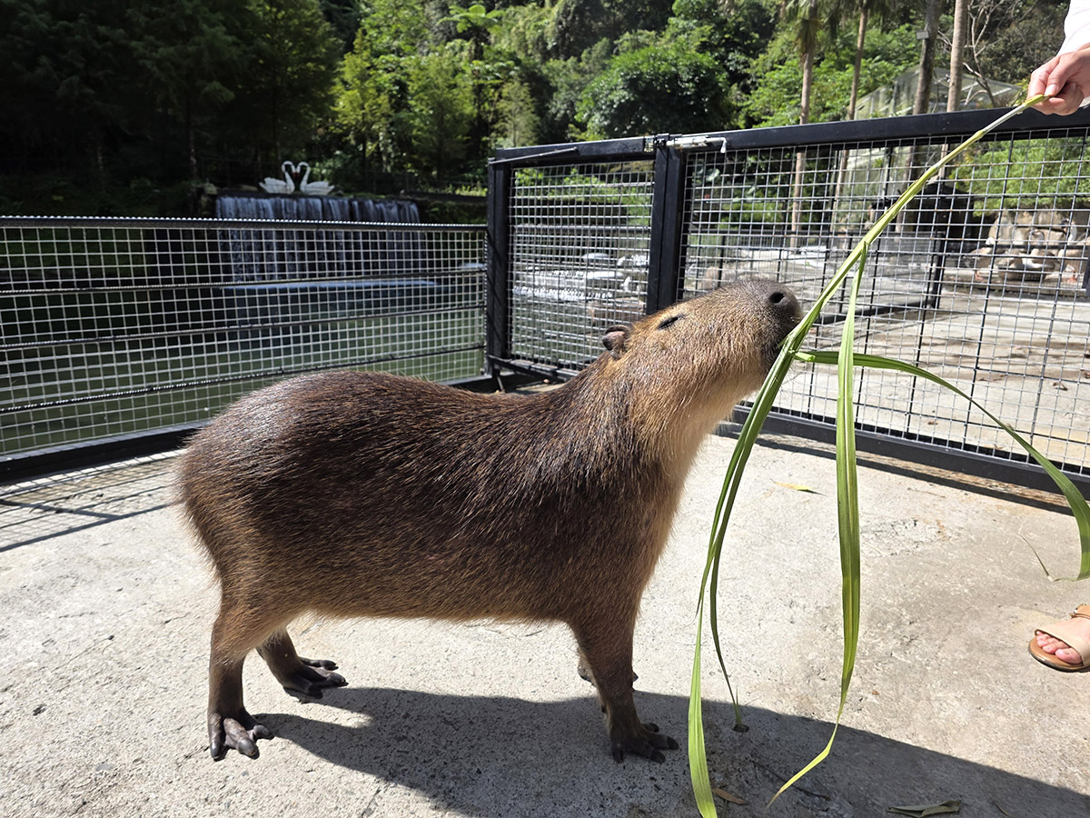 卡皮巴拉互動時間是在隔天早上的09:30-10:30,園區會提供免費茅草給大家體驗餵食的樂趣。