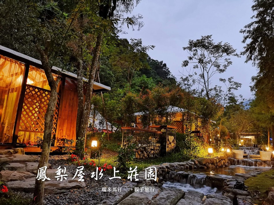 鳳梨屋水上莊園位在宜蘭縣員山鄉,2016年11月開始營運,高級的度假式露營區、鳯梨造型大泳池充滿南洋風情,美麗的園區造景,潺潺小溪穿過營區之間,生態豐富,小朋友可以戲水,還能在溪裡尋找小魚、蝌蚪與青蛙。