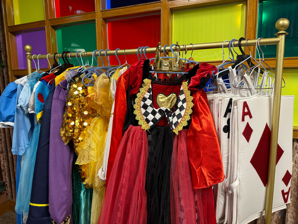 飯店特別設計了,全新魔幻變裝SHOW,每房一次,每次1.5小時,可至在2F活動櫃台租借(有多種變裝造型可以選擇),租借時間為09:00-19:30,化身為童話故事中的人物,可穿到園區各角落拍照哦。(不建議穿著玩活動)