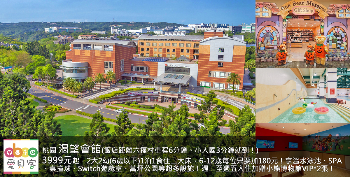 週二至週五入住贈小熊博物館VIP*2張!桃園-渴望會館3999元起享2大2幼(6歲以下)1泊1食升等住朝露客房,加1小(7-12歲)含早餐每位只要加180元!可加價升等小熊主題親子房!享飯店室內溫水游泳池、室內水療池、Switch遊戲室、桌撞球等設施!