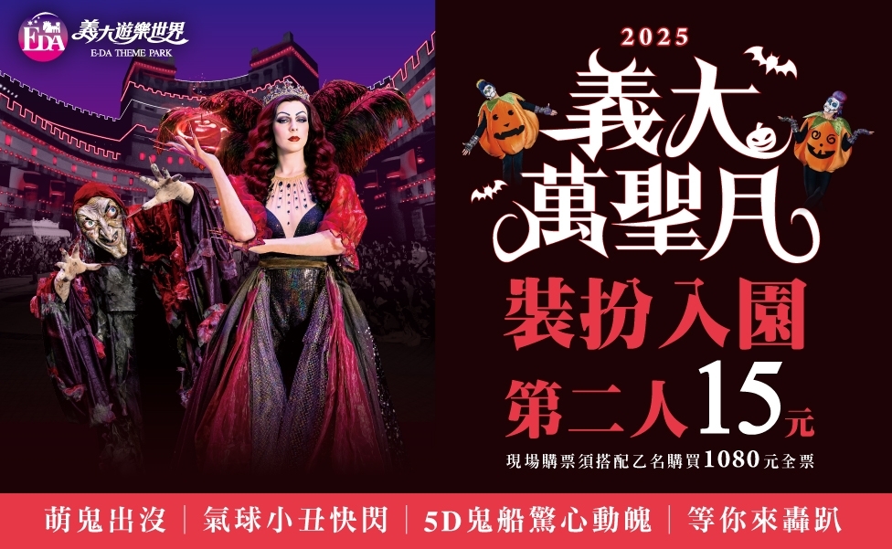 高雄 義大世界 10/10-10/12 萬聖裝扮購票入園(需搭配乙名購買1,080元全票)👻第二人只要15元